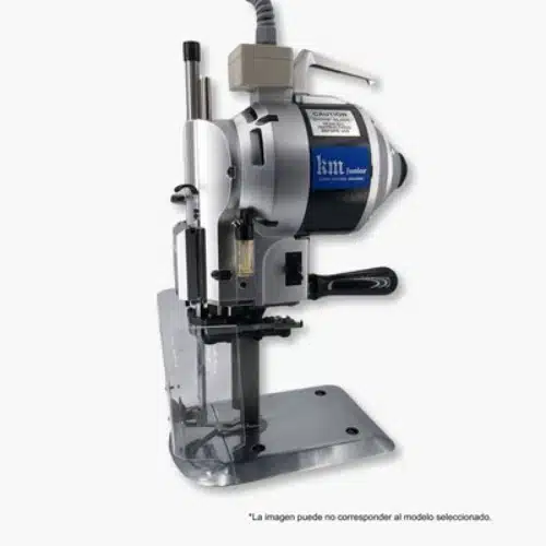 La propia descripción comercial de la KM Junior 10″ indica que la base incorpora rodillos para que tanto la máquina como el tejido se deslicen de forma más suave antes y después del corte. También se destaca un motor pensado para cortar de manera continua y uniforme sin sobrecalentamiento.