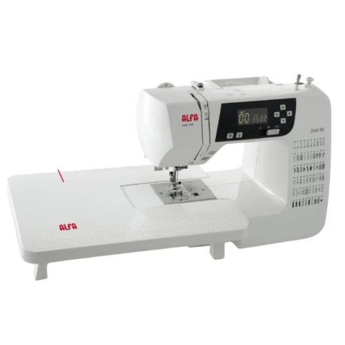 La ALFA 2160 es una máquina de coser electrónica con 60 diseños de puntada y 7 tipos de ojales automáticos. Pantalla LCD, Start/Stop, regulador de velocidad, aguja arriba/abajo, enhebrador automático y doble altura de prensatelas. Ancho de zigzag hasta 7 mm y longitud de puntada hasta 5 mm. Cómoda, fácil de usar y preparada para trabajar tanto tejidos delicados como géneros más gruesos.