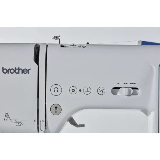 El regulador de velocidad permite adaptar el ritmo al tejido y a la complejidad de la costura sin depender del pedal. El botón Start/Stop libera las manos para guiar el tejido con más control, especialmente en costuras que requieren precisión. El posicionador de aguja arriba/abajo facilita los giros en esquinas y los cambios de dirección sin perder el punto.