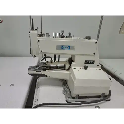La BTF es una máquina industrial especializada en el cosido de botones, diseñada para producción en serie en talleres de confección. Las botoneras industriales son herramientas específicas que no pueden sustituirse con una máquina de costura convencional: fijan el botón al tejido con una puntada precisa y repetible en cada ciclo, a una velocidad y consistencia que el cosido manual no puede igualar en producción.