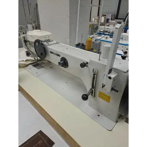 Con una longitud de brazo de 762 mm, esta máquina permite maniobrar piezas de gran tamaño — velas, lonas, toldos — sin que el material quede limitado por la profundidad del brazo. Un factor determinante en este tipo de trabajo, donde las piezas suelen ser voluminosas y difíciles de controlar en máquinas de brazo corto.