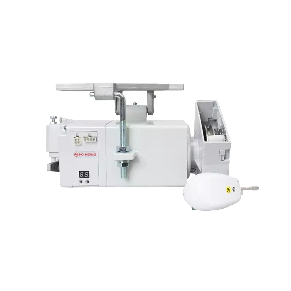 Ho Hsing G60-1N — Servo industrial de 600 W de la serie G, con par suficiente para trabajar no solo en máquinas estándar sino también en algunas walking foot o doble arrastre de peso ligero a medio. Regulador manual de velocidad, modos de posición de aguja y plataforma preparada para sincronizador externo. Un escalón real por encima de un servo básico para talleres que necesitan más fuerza y más control.