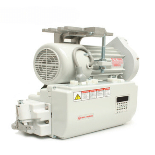 Ho Hsing i90 — Servomotor industrial de gama alta en formato mesa con 550 W o 750 W, compatible con cualquier tipo de máquina de coser. Hasta 15 puertos de entrada y 12 salidas para solenoides, funciones integradas de soft start, alzaprensatelas, trimmer, wiper, back-tacking, señal para refrigeración de aguja y edge sensor. Paneles de control C-60 y C-200 disponibles. Sustituto de la HVP-90 y preparado para configuraciones de automatización avanzada.