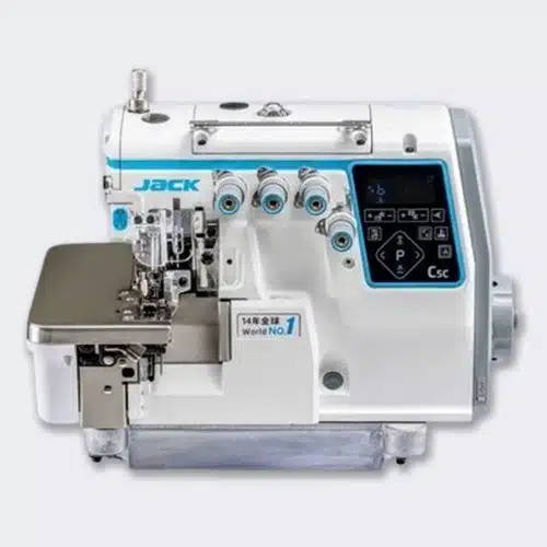 La Jack JK-C5C-5 no está en la línea de una remalladora estándar de 5 hilos. Es una máquina con una base electrónica más avanzada, pensada para talleres que buscan reducir la intervención manual, mejorar la respuesta ante cambios de tejido y ganar productividad real en producción continua.
