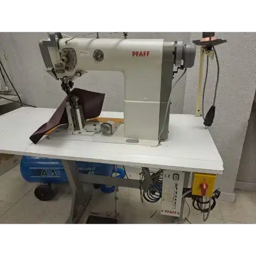 La fabricación alemana Pfaff es garantía de robustez mecánica y precisión en el funcionamiento, con una trayectoria de más de 160 años en maquinaria industrial de costura. Esta unidad se entrega con motor electrónico Pfaff, levantapatas neumático, mesa y bancada incluidos.