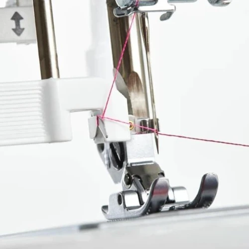 El IDT™ acompaña al arrastre inferior del tejido desde arriba, mejorando el avance del material y reduciendo desplazamientos entre capas. Especialmente útil en telas deslizantes, patchwork y costuras largas donde el tejido tiende a moverse.